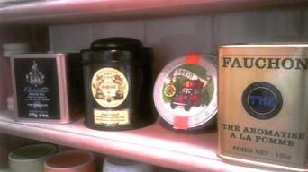 (左からフォートナム、マリアージュ、ルピシア、フォション缶/両端は中身違うの入ってますけど 笑)